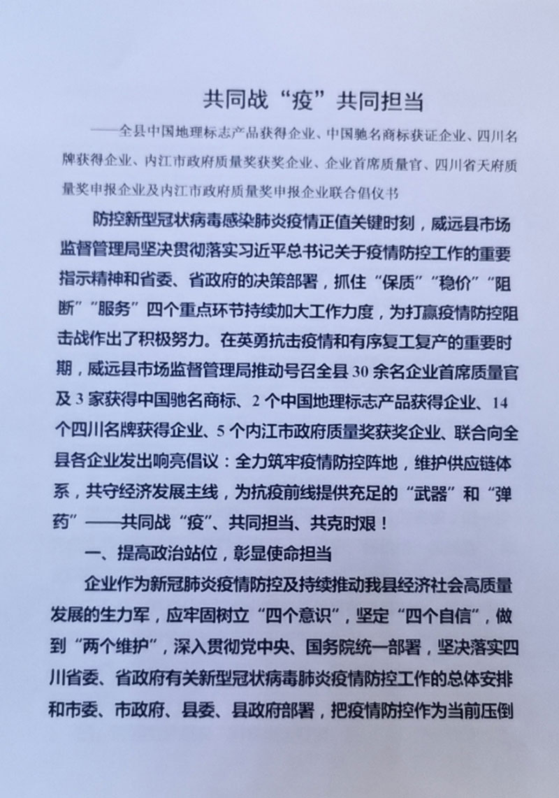 防控新型冠状病毒感染肺炎疫情正值关键时刻,威远县市场监督管理局坚决贯彻落实习近平总书记关于疫情防控工作的重要指示精神和省委、省政府的决策部署